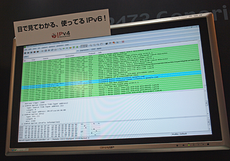 IPv4アドレス枯渇対応タスクフォースのブースでは、IPv6が問題なく共存できることを示すデモも行われた |